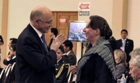Durante la 42da. Asamblea General de la OEA que sesionó en Bolivia, el canciller Héctor Timerman se acercó a la delegada británica Fiona Clouder y la invitó a comenzar las negociaciones sobre Malvinas.