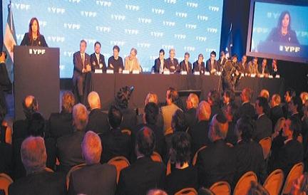La presidenta Cristina Fernández presentó el plan estratégico para YPF. Aseguró que las decisiones del gobierno apuntan a preservar todo lo logrado en los últimos 9 años y destacó el carácter profesional del directorio de la petrolera recuperada.