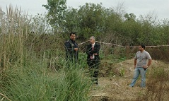 En tanto, el subcomisario Luis Sarabia, a cargo del operativo al momento de la llegada de funcionario, afirmó que "los líquidos que se desprendían de unos de los toneles eran compatibles con un cuerpo humano. A otro de los barriles (identificado con el número 2) se le cortó la tapa de concreto y adentro se encontró una mandíbula".