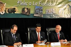 El gobernador Jorge Capitanich, suscribió este jueves en Buenos Aires un convenio con el ministro de Turismo de la Nación Enrique Meyer, y con la titular de la Administración de Parques Nacionales (APN) Patricia Gandini, para pagar el costo indemnizatorio de la Estancia La Fidelidad que fue declarada de “utilidad pública” y “sujeta a expropiación”.