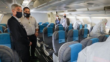 En tanto, Ceriani sostuvo: “En un trabajo conjunto con el Ministerio de Transporte y con el Instituto Malbrán logramos aplicar tecnología y poder hacer de los vuelos realmente un ámbito seguro de covid, con una metodología y una tecnología de desinfección muy efectiva, con un efecto residual muy potente para poder desinfectar los aviones".