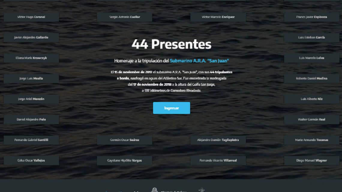 "Mantener viva la memoria y el honor de nuestros 44 compatriotas", es el objetivo de la plataforma creada por el Ministerio de Defensa y la Armada Argentina.