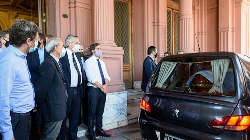 El presidente Alberto Fernández aseguró este sábado que el día en el que murió Diego Maradona quiso ponerse "al lado de la familia, sin ponerle condiciones, lo que derivó en la decisión de abrir las puertas de la Casa Rosada para que pudieran allí los argentinos despedir al héroe popular, tal como lo pidió su círculo íntimo”.