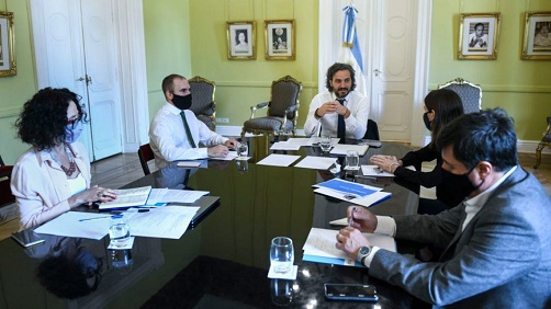 El jefe de Gabinete de Ministros de la Nación, Santiago Cafiero, encabezó esta tarde una nueva reunión del gabinete económico, que se llevó a cabo en el Salón de los Científicos de la Casa Rosada, con la presencia de los ministros de Economía, Martín Guzmán; de Desarrollo Productivo, Matías Kulfas; de Trabajo, Claudio Moroni; Agricultura, Ganadería y Pesca, Luis Basterra; la titular de AFIP, Mercedes Marcó del Pont; el presidente del Banco Central, Miguel Pesce, la vicejefa de Gabinete, Cecilia Todesca Bocco y el secretario de Política Económica, Fernando Morra.