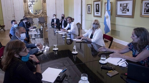 En Casa Rosada, las autoridades nacionales y provinciales concretaron un abordaje sanitario y epidemiológico de cada centro de aislamiento, como así también intercambiaron información con respecto a las denuncias sobre un supuestos abusos y arbitrariedades por parte de la autoridad policial que, en el cumplimiento del aislamiento vigente en dicha provincia, constituyan actos de violencia institucional.