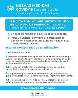 El gobernador Jorge Capitanich firmó en la noche de este jueves 4 de febrero, el decreto N° 223/21 que determina que quienes no utilicen tapabocas o barbijo al circular por la vía pública podrán ser multados.