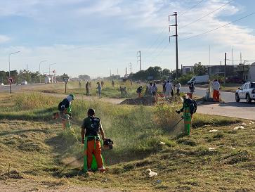 El operativo que se realizó con 50 trabajadores municipales, inició en avenida Soberanía y Ruta 11 y continuará hacia la avenida Alvear. Los operarios cuentan con máquinas desmalezadoras y tres camiones para recolectar la basura.