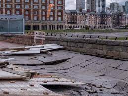 El titular de Defensa Civil, Rodrígo Goncálves, precisó además en diálogo con Télam que "se reportó también la voladura de un techo en la calle Necochea al 8900 que afectó a viviendas linderas", y una decena de empalizadas y obradores fueron derribados por el viento.