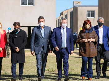 Junto al mandatario estaban la vicepresidenta, Cristina Fernández de Kirchner; el gobernador de Buenos Aires, Axel Kicillof; y el presidente de la Cámara de Diputados de la Nación, Sergio Massa.