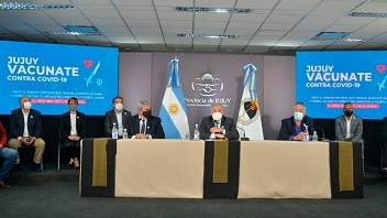 A su lado, el vicegobernador de Jujuy, Carlos Haquim, apuntó que conversaron con los presidentes de bloques de los distintos espacios políticos de la Legislatura provincial y que esta tarde se realizará una reunión de labor parlamentaria con la idea de contar con los acuerdos “para sesionar el viernes a las 11 y aprobar la ley para facilitar la compra de las vacunas”.