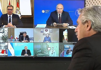 En su exposición, el jefe de Estado ponderó el vínculo entre Rusia y Argentina, y remarcó que el país “siempre tuvo confianza en la capacidad rusa para el desarrollo de la vacuna”, en contraposición a las críticas de dirigentes opositores de Juntos por el Cambio.