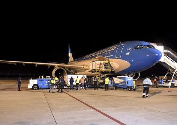 Una hora más tarde tocó pista procedente de Beijing el vuelo de Aerolíneas Argentinas AR1087 con 768.000 dosis de Sinopharm, en lo que fue el séptimo avión de la línea de bandera de un total de diez viajes previstos durante julio, hasta llegar a los 8 millones de inoculantes del laboratorio chino.