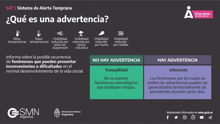 El Servicio Meteorológico Nacional (SMN) anunció un alerta voleta desde el miércoles 28 de julio a las 18 hasta la medianoche del jueves. Rige para 18 de las 23 provincias y la Ciudad Autónoma de Buenos Aires. Además, hay alerta amarillo para mañana viernes en provincia de Buenos Aires y La Pampa.