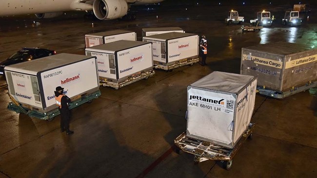 Un total de 1.336.000 dosis arriban a las 7, en el vuelo LH540 de la compañía aérea Lufthansa, y, sumadas a las 1.536.000 que llegaron anoche al Aeropuerto Internacional de Ezeiza desde Frankfurt, se alcanzan 2.872.000 de dosis de la vacuna Sinopharm.