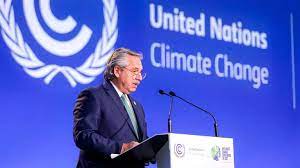 Hacia el final de su disertación, el jefe de Estado argentino hizo un llamado a "cumplir los compromisos y obligaciones asumidas por las economías desarrolladas y garantizar el acceso a los 100 mil millones destinados a impulsar la acción climática".