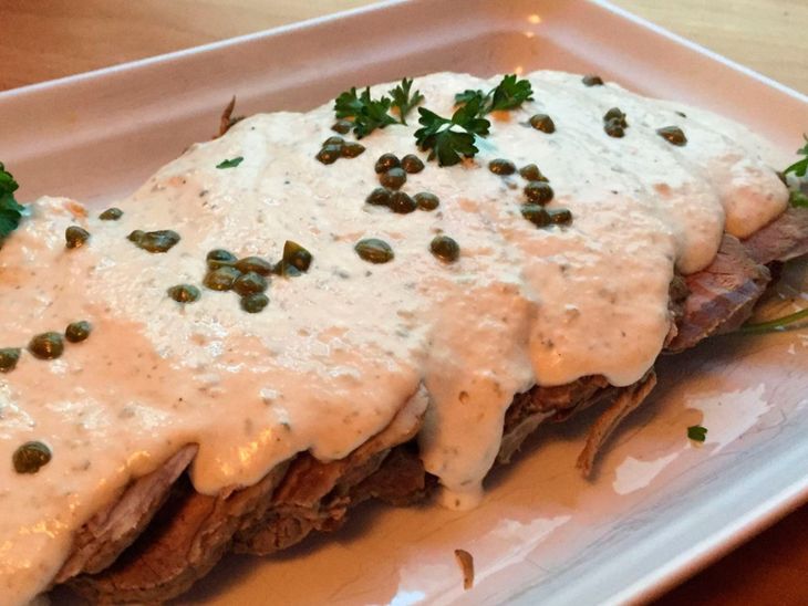 El único detalle para descongelar el plato es pasarlo del freezer a la heladera 24 horas antes de servirlo, ya que los ingredientes de la salsa (que lleva atún, anchoas, alcaparras y mayonesa) podrían echarse a perder a temperatura ambiente.