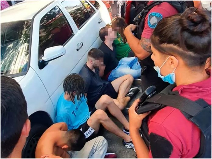Según informaron las fuentes a Télam, los policías detuvieron de inmediato a los seis sospechosos, de entre 20 y 24 años, quienes no tienen antecedentes penales y fueron llevados a la comisaría 14A de la Policía de la Ciudad.