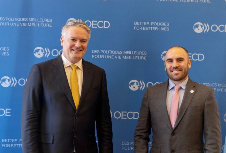 Guzmán mantuvo más temprano un encuentro con el Secretario General de la OCDE, Mathias Cormann, en la que, según publicó el ministro en sus redes sociales “se analizó el contexto económico global y la respuesta multilateral a los desafíos impositivos derivados de la digitalización de la economía".