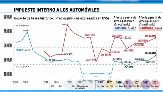 Debido a las distintas formas de computar el gravamen y a la posibilidad de que se resigne ese margen, no hay un precio al público único, pero el valor de referencia ronda los $4.300.000. Hasta ayer, los modelos que deben pagar la primera escala son los que se ubican por arriba de $3.770.000.