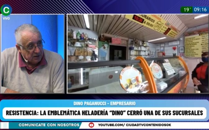 Dino Paganucci, de la heladería artesanal Dino, visitó los estudios de CIUDAD TV y confirmó el cierre del local comercial de avenida Sarmiento y Ayacucho. Ahora la atención es exclusiva en el local de avenida 25 de Mayo 329. “Lo que aceleró todo fue la enfermedad de mi señora y la mía propia, estábamos cada vez más cansados y hay que estar al cien por ciento para continuar brindando productos a la gente. Hicimos un arreglo con una persona que se hizo cargo de la esquina, del personal reglamentariamente, con su antigüedad, su obra social y beneficios sociales se hizo el traspaso de contrato de trabajo. Ellos hacen helados, son chaqueños y le dan trabajo a la gente del Chaco que es lo que siempre pregono para que se movilice la industria chaqueña”, comentó.