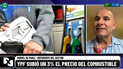 El referente del mercado de hidrocarburos en Chaco, Miguel De Paoli, dialogó con CIUDAD TV luego del aumento que volvieron a sufrir los combustibles este lunes, esta vez del 3%. "Tres chupetines vale un litro de nafta súper, hay algo que está mal", afirmó.