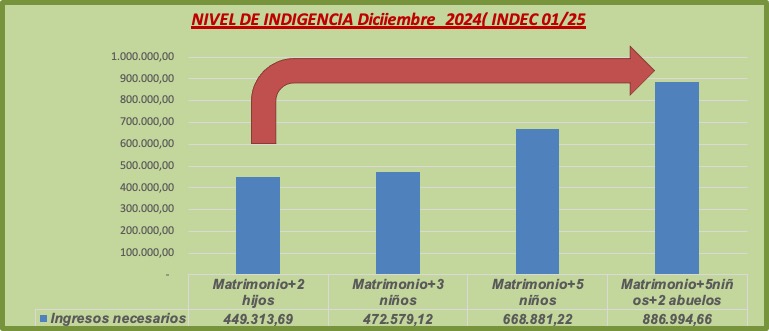 Para no ser pobre una familia de cinco integrantes y dos mayores requirió en Diciembre de 2024 contar con $2.022.347 de bolsillo