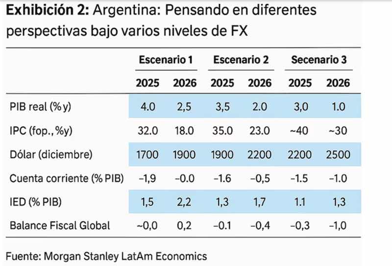 Los tres escenarios que planteó Morgan Stanley “La mayor incertidumbre afectaría el crecimiento, dado que la inversión extranjera directa permanecería por debajo de su potencial debido a las dudas empresariales sobre las elecciones de 2027 y la sostenibilidad de las políticas”, enfatizó.