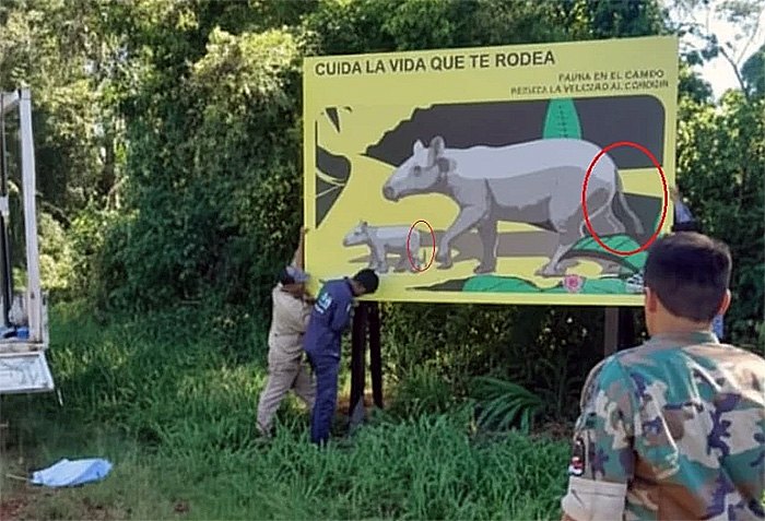 En Misiones pusieron carteles para proteger a los tapires pero los dibujó con cola y sin trompa