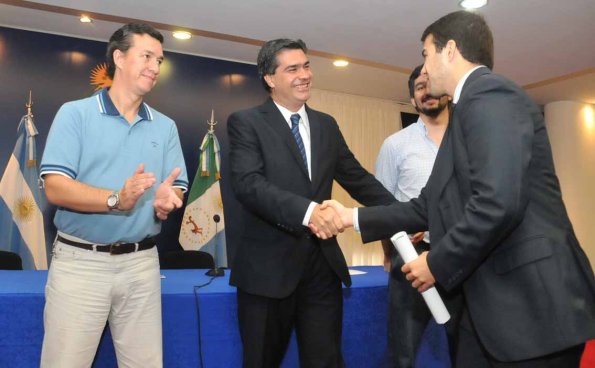 El acto de entrega de las becas se realizó en el salón Obligado de Casa de Gobierno y contó con la presencia del presidente de la Cámara de Diputados, Eduardo Aguilar; el ministro de Industria, Sebastián Agostini; y el subsecretario de Empleo, Darío Kohli.