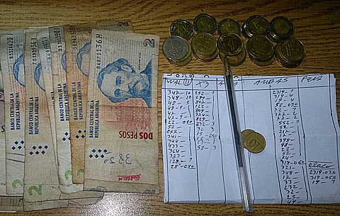 Cuando se le pidió que exhiba sus pertenencias, sacó del bolsillo delantero del pantalón un trozo de papel - tipo planilla - con anotaciones manuscritas con jugada de quiniela clandestina, un bolígrafo marca “BIC” sin tapa con tinta color negro y la suma de $77,65 discriminados en billetes y monedas de distintas denominaciones. Posteriormente los elementos fueron secuestrados y el sujeto fue trasladado hasta el Departamento de Drogas Peligrosas donde quedó detenido a disposición del Juzgado de Paz del Barrio Ricardo Guiraldes.