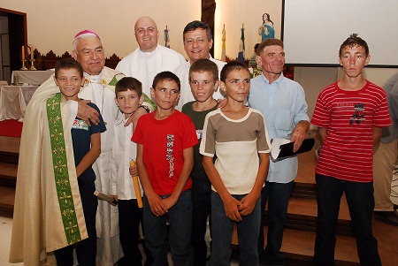 “Dejen que los niños se acerquen a mí, y no lo impidan, porque el Reino de Dios es para los que son como ellos”, las palabras del Evangelio que fueron resaltadas por el titular de la Arquidiócesis de Resistencia, monseñor Fabriciano Sigampa, tuvieron una manifestación concreta en el bautismo de los niños Priscila Nadya, Ludmila Yanela Anahi, Carlos Luis, Axel Emanuel y Mateo, cuyos padres tramitaron el madrinazgo presidencial y eligieron como padrinos al gobernador Jorge Milton Capitanich y , en el caso del último ahijado oriundo de Villa Ángela, al intendente Oscar Domingo Peppo.