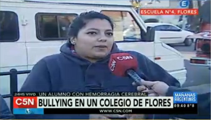 Nota Relacionada: Triste primer puesto: Argentina, líder en el ranking de bullying escolar "Mis hijos por suerte no sufieron agresiones pero me enteré que a otros chicos los golpearon", contó una madre en la puerta del establecimiento en diálogo con C5N.