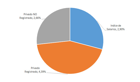 El sector público por su parte experimento durante el mes considerado un incremento del el 0,10%, aunque vale resaltar que desde el mes de enero de 2015 acumula un 11,97% de incremento.