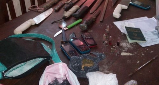 Del registro realizado, se encontró 22 envoltorios de polietileno, listos para ser comercializados, un trozo compacto recubierta con cinta de embalaje; cuatro celulares de alta tecnología; una balanza estilo romana, elementos de corte, gran cantidad de armas blancas y la suma total de $ 345, 70, discriminados en billetes y monedas de distintas valoraciones.