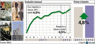 Durante el tercer mes del año, la actividad industrial creció el 1,8 por ciento respecto a igual mes del 2011, avalado por el crecimiento del 7,3 por ciento en la producción de “Minerales no metálicos” ligados a la construcción, mientras que la producción de Acero Crudo subió 5,1 por ciento interanual, mientras que la de aluminio retrocedió 13,8 por ciento.