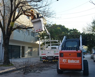 En avenida Las Heras hasta Alberdi y desde Castelli hasta 9 de Julio, se llevaron a cabo tareas de poda, recolección de ramas y hojas, trabajo necesario en la presente época del año para un mejor desarrollo del arbolado.