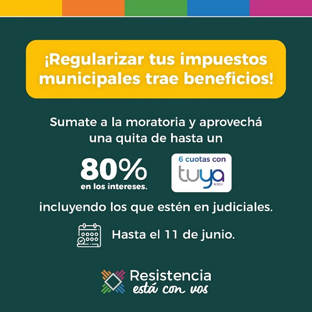 Locales | Este viernes 11 de junio vence el plazo para acogerse al régimen especial de facilidades de pago que dispone Resistencia para cancelar deudas municipales, con importantes descuentos en los intereses.