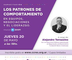 Locales | El próximo jueves 20 de mayo a las 18 horas, la Cámara de Comercio de Resistencia organiza junto a Fundación Banco Credicoop, una capacitación titulada “Los patrones de comportamiento en equipos, negociaciones y el liderazgo”.