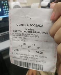Locales | Una joven estudiante universitaria de Roque Sáenz Peña retiró esta mañana un premio superior a los 5,8 millones de pesos, que había obtenido durante el sorteo de la Quiniela Poceada Chaqueña del pasado martes 4 de mayo.