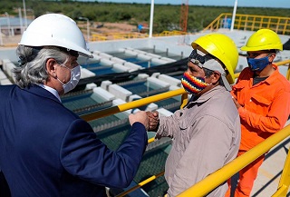 Locales | Alberto Fernández inauguró este jueves, junto al gobernador Jorge Capitanich, el acueducto de El Impenetrable, donde se anunció además el llamado a licitación para la construcción de la Terminal de Cargas de Puerto Las Palmas, con una inversión de más de $500 millones. El acueducto permitirá abastecer de agua potable a las localidades de Wichi, Nueva Pompeya, El Sauzal y Fuerte Esperanza, incluyendo 60 comunidades rurales.