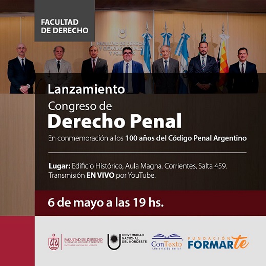 Locales | La Facultad de Derecho y Ciencias Sociales y Políticas de la Universidad Nacional del Nordeste invita al lanzamiento y conferencia de prensa del evento que se realiza en conmemoración a los 100 años del Código Penal Argentino.