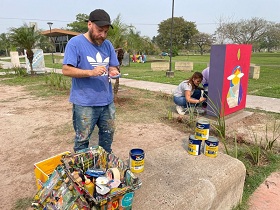 La Municipalidad continúa emplazando obras para completar el Paseo de Buen Trato a las Personas Mayores, en el Parque de la Democracia. En esta oportunidad, el artista local Luciano Acosta interviene un tótem que será inaugurado el próximo domingo.