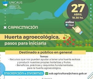 Locales | La jornada -que cuenta con acompañamiento de la Universidad del Chaco Austral (Uncaus)- es abierta, está dirigida al público en general y requiere de inscripción previa a través del correo electrónico sub.agricultura@chaco.gob.ar.