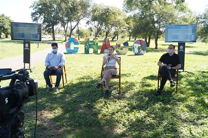 Locales | El encuentro con la prensa, que se llevó a cabo en el Parque de la Democracia, fue encabezado por los ministros Santiago Pérez Pons y Sebastián Lifton, y la ministra Pía Chiacchio Cavana.