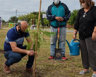 Locales | Como continuidad del cronograma de marzo de reforestación, la Ciudad realizó una plantación de arboles en la plazoleta “René Favaloro” del barrio 130 Viviendas.