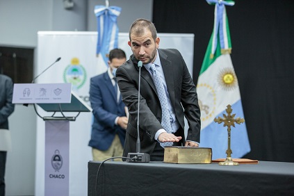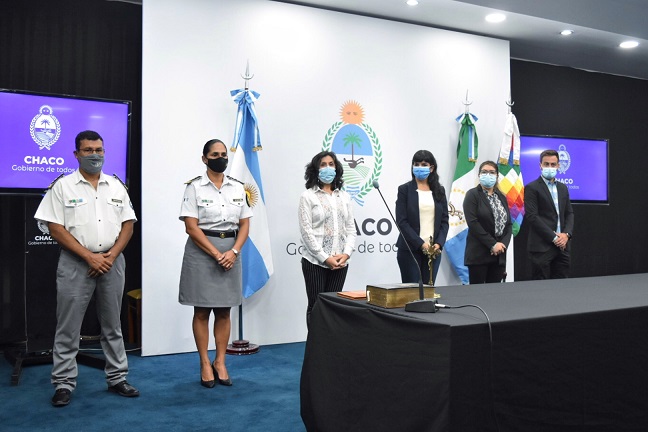 Locales | En el Salón Obligado Analía Rach Quiroga tomó juramento a Gilda Erika Maidana, primera mujer directora de esta fuerza de seguridad, y al subdirector Gerardo Fabián Sotelo.