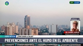 El neumonólogo Daniel Carlés aseguró que la cortina de humo que cubre el ambiente en la provincia “trae consecuencias en la salud” debido a las partículas tóxicas que desprende. Alertó a la población vulnerable, entre ellos niños y pacientes con enfermedades crónicas respiratorias, y brindó una serie de recomendaciones.