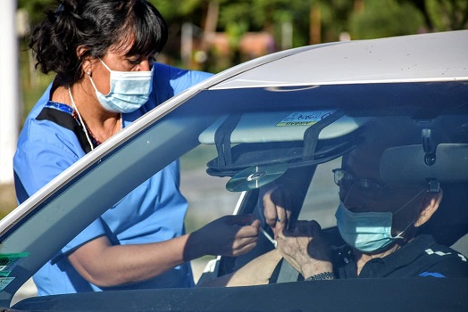 Locales | El Ministerio de Salud Pública ubicó postas al aire libre, destinadas a personas con turnos asignados que no pudieron acercarse a recibir la primera dosis la semana pasada. El martes 9, comenzará la inmunización de un nuevo grupo de 10.800 personas del mismo rango etario de riesgo (mayores de 80 años).