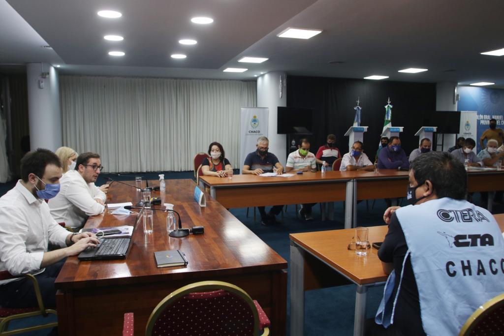 Locales | En el marco de la Comisión de Política Salarial, el ministro de Planificación, Economía e Infraestructura y su par de Educación, se reunieron hoy con los 18 sindicatos docentes. "Planteamos un plan integral, que incluye una política salarial, pero también un programa de infraestructura escolar y un protocolo sanitario", señaló Pérez Pons.
