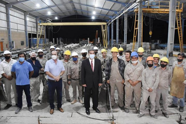 Locales | En el parque industrial de Presidencia Roque Sáenz Peña, el gobernador recorrió la planta de producción de la empresa Indupret SA, que elabora materiales premoldeados para tendidos eléctricos. Con el respaldo del Gobierno provincial la firma trabaja para ampliar sus instalaciones y sumar operarios formales.